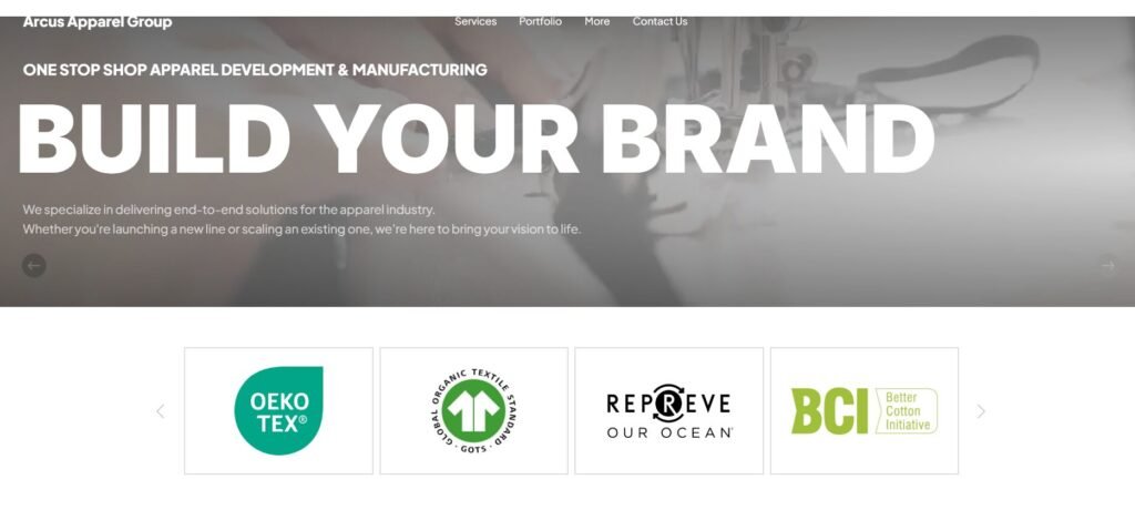 Arcus stands out for its technical depth. It offers support across tech packs, pattern development, sourcing, fit refinement, and branded finishing, which makes it feel more like a full-service development partner than a basic cut-and-sew factory.
