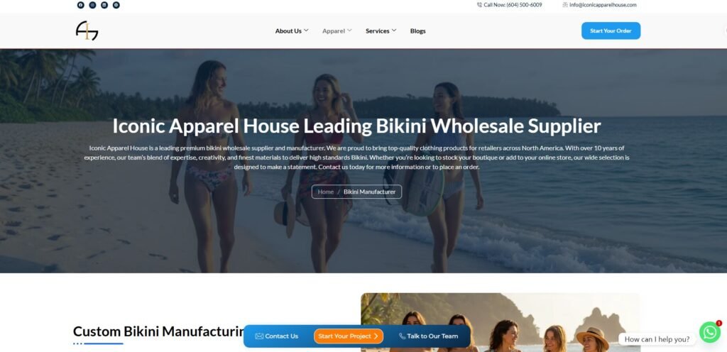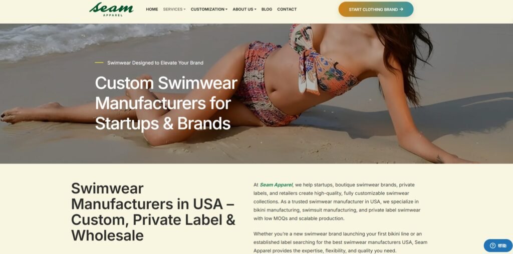 As a trusted U.S. swimwear manufacturer, Seam Apparel specializes in bikini production and private-label swimwear. They assist startups, boutique swimwear brands, private labels, and retailers in creating high-quality, fully customizable swimwear collections.
