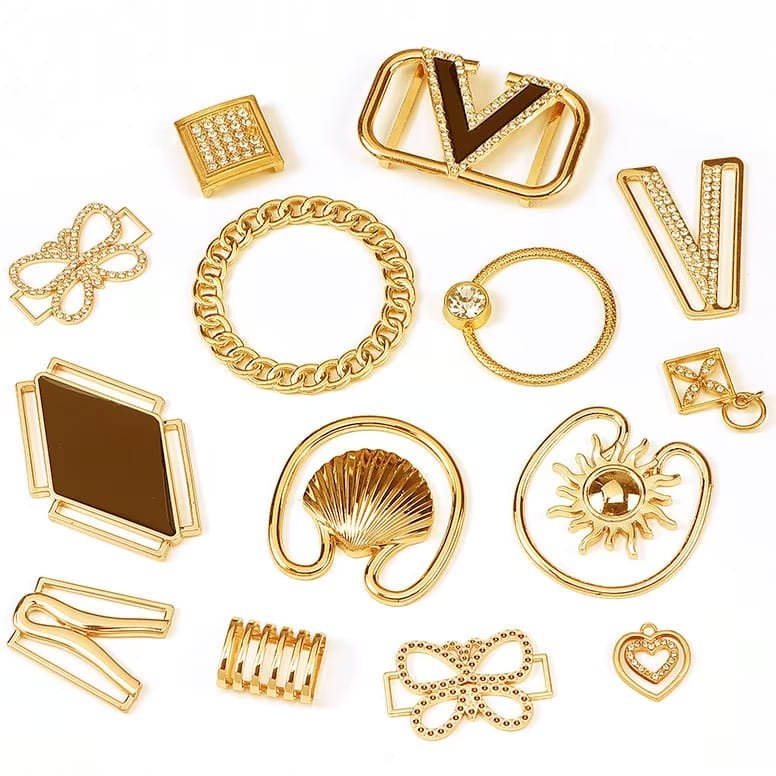 - Metal hardware: rings, sliders, hooks in gold, silver or matte finishes
