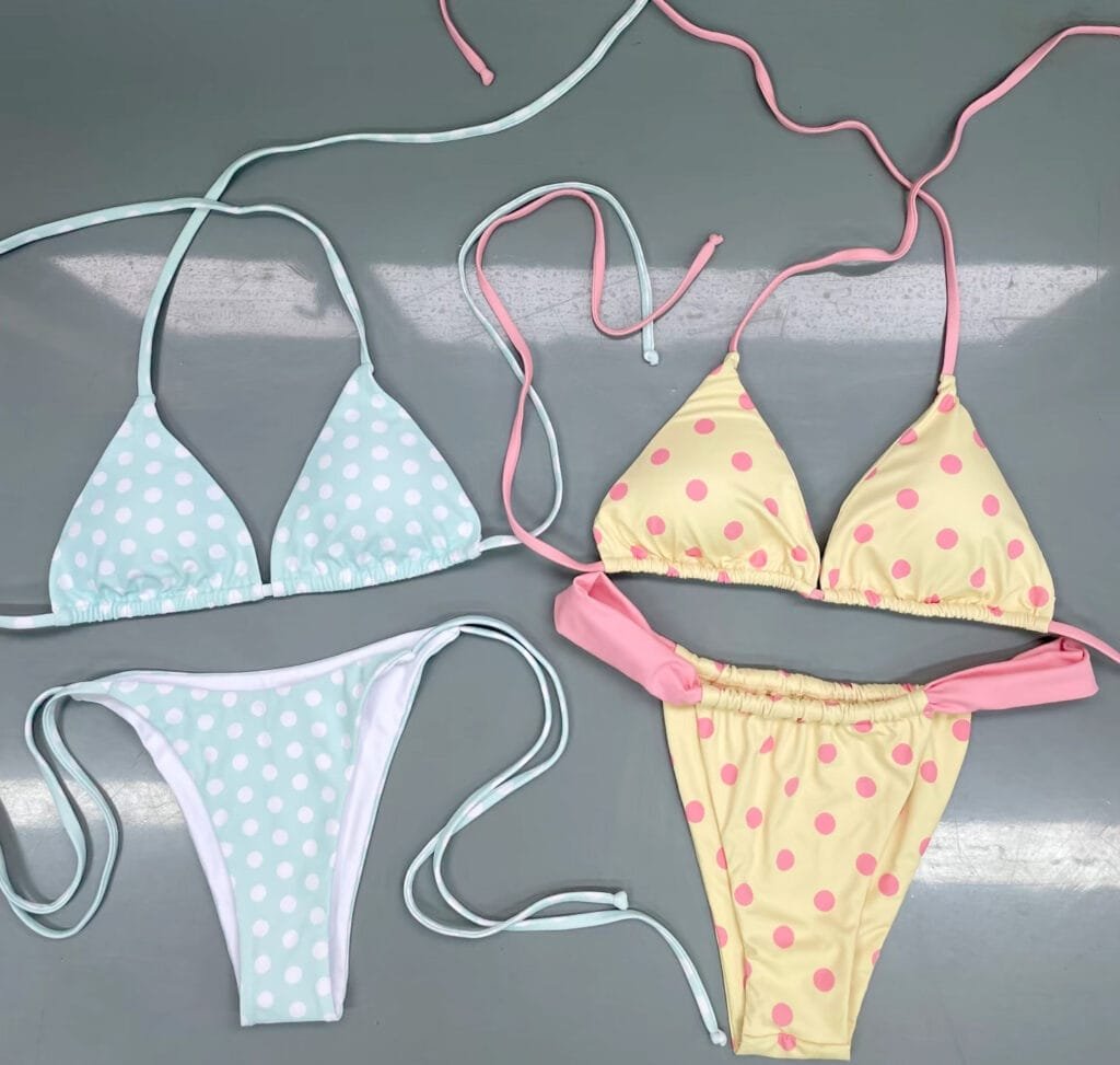 - Customization Opportunities: You can collaborate with bikini manufacturers to effortlessly customise polka dot patterns, selecting different sizes, colours and placements to align with your brand and collection’s unique identity. This affords you the opportunity to design exclusive prints that stand out in the highly competitive swimwear market.