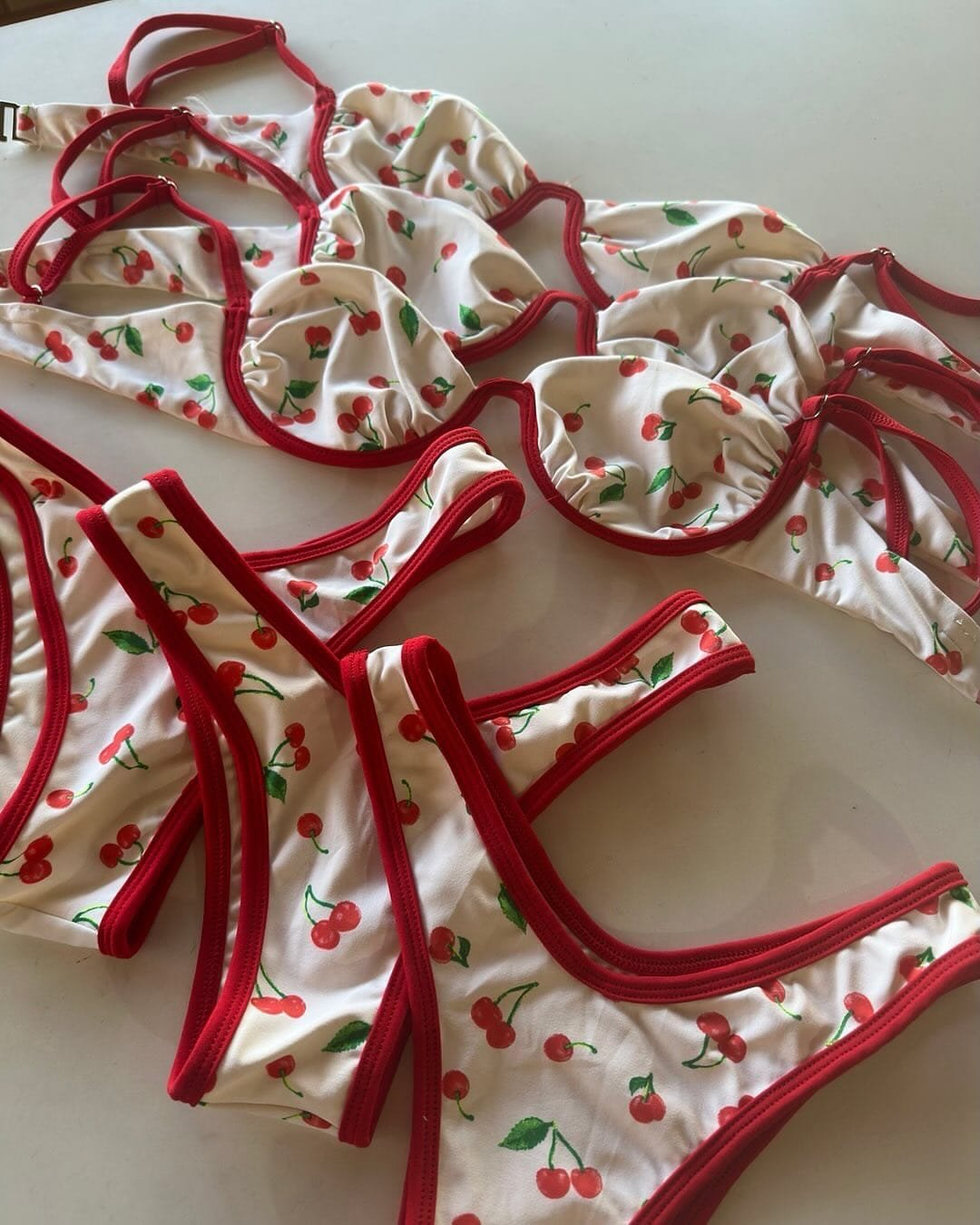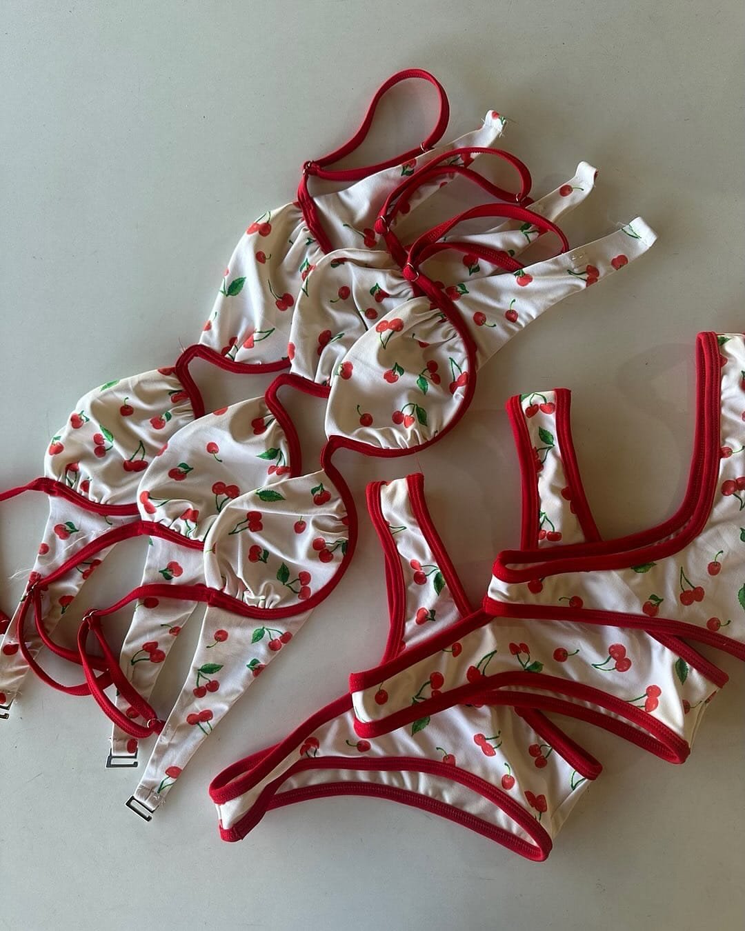 Looking for unique prints? We offer custom swimwear printing services with premium fabrics and vibrant colors. Create your own cherry-print or fully personalized bikini collection to make your brand unforgettable.