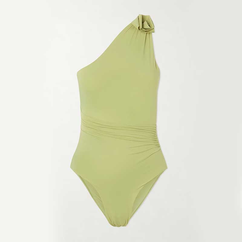 One-Shoulder Applique Ruched Swimsuit