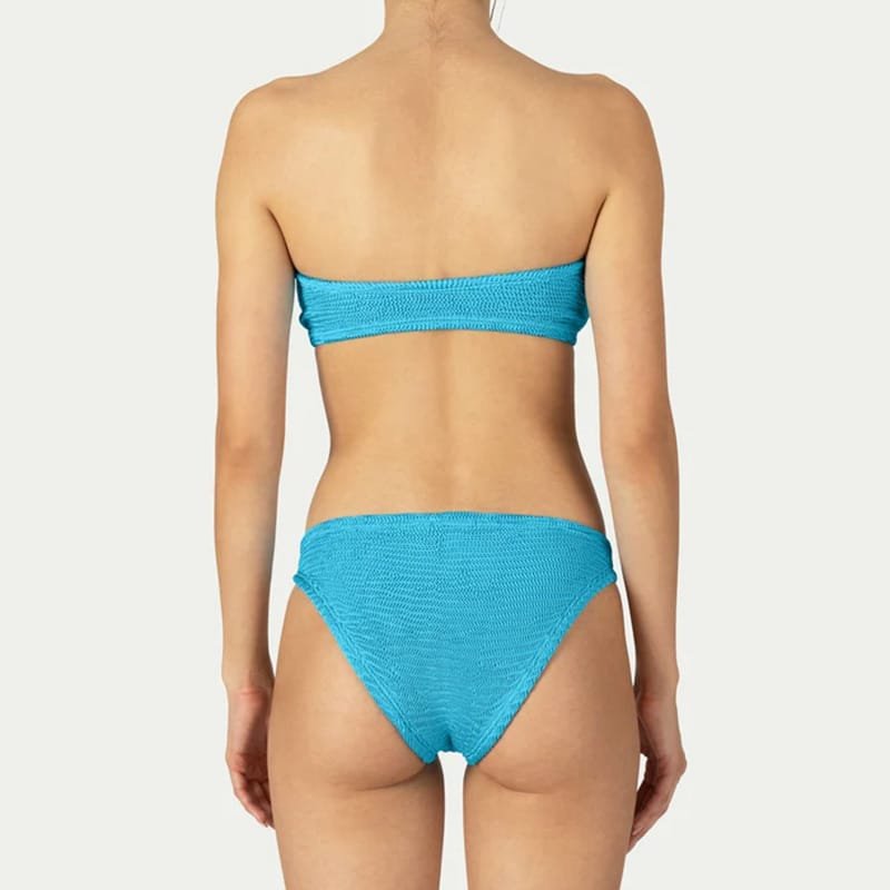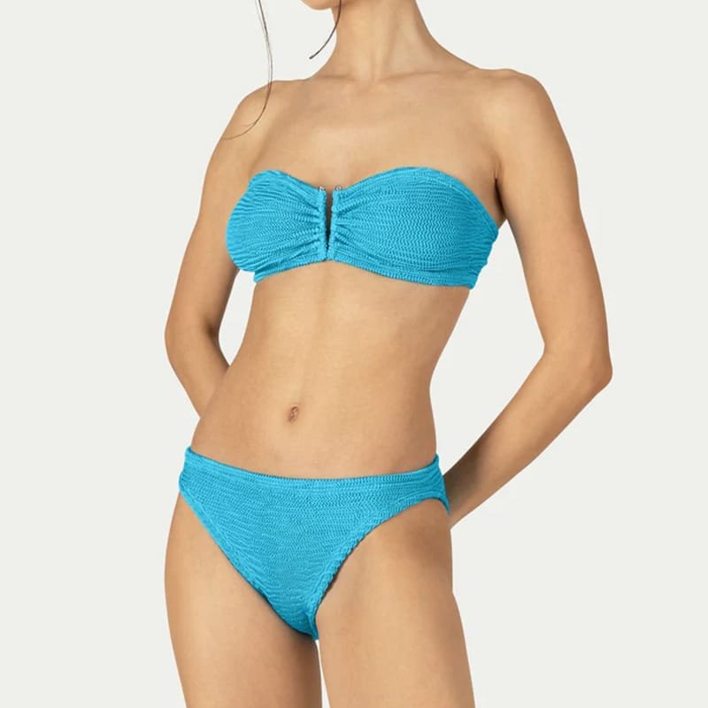 This elegant bandeau bikini set features a chic gathered top with a flattering high-waisted bottom, perfect for any beach or poolside look. Made with textured fabric, it provides a comfortable fit while giving you a stylish, seamless appearance.